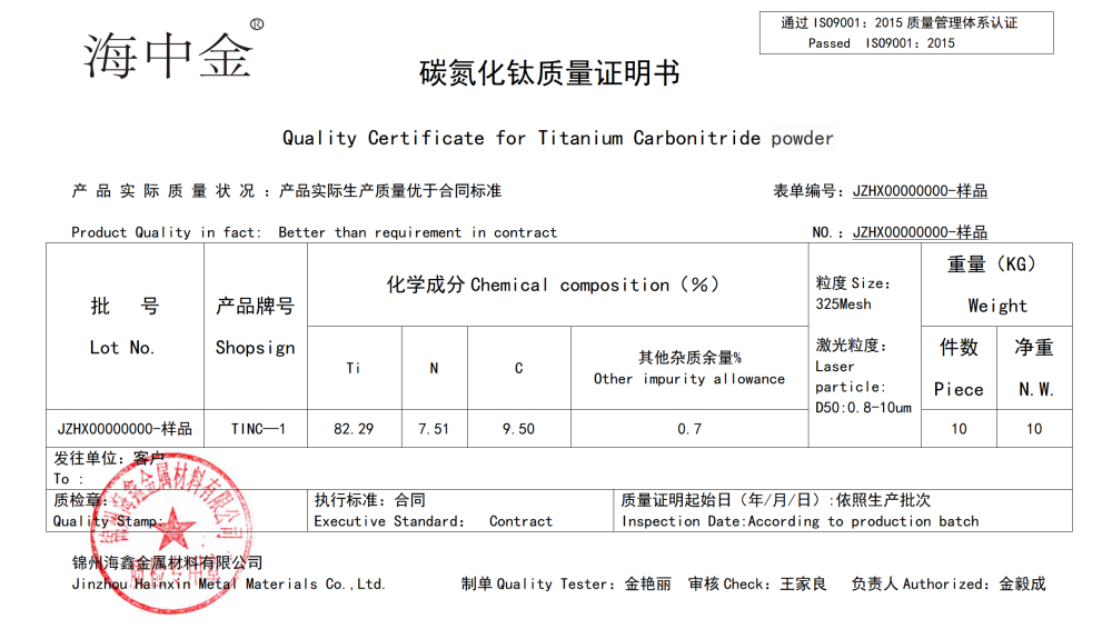 產(chǎn)品名稱(chēng):碳氮化鈦(TiCN)