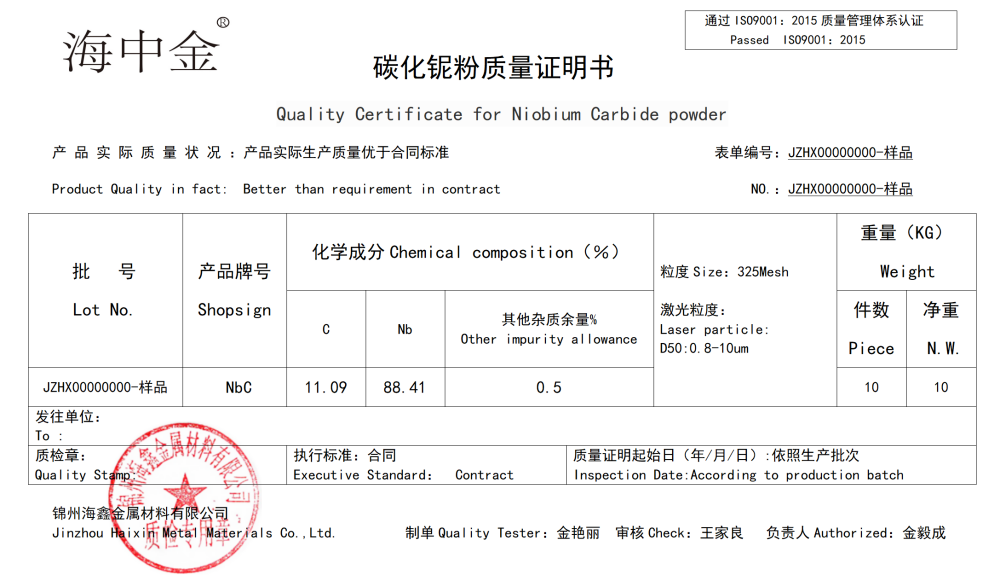 產(chǎn)品名稱:碳化鈮(NbC) 規(guī)格:0.8-10um(D50)   形貌:不規(guī)則 顏色:黑灰色  特點:優(yōu)異的高溫強度、‌硬度、‌彈性模量和耐腐蝕性 用途:航空航天、‌汽車制造、‌電子工業(yè)等領(lǐng)域