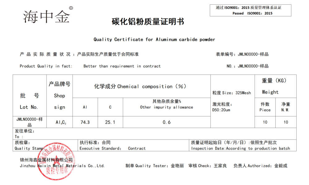 產(chǎn)品展示 當(dāng)前位置:首頁產(chǎn)品展示—碳化鋁 Aluminium carbide(Al4C3)