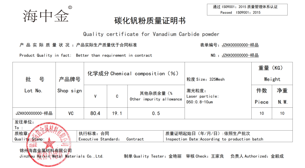 產(chǎn)品名稱:碳化釩(VC) 規(guī)格:0.8-10um(D50)   形貌:不規(guī)則 顏色:黑灰色  特點(diǎn):高硬度、高‌熔點(diǎn)和高溫強(qiáng)度、良好的導(dǎo)電和導(dǎo)熱性 用途:鋼鐵冶金、‌硬質(zhì)合金、‌電子產(chǎn)品、‌催化劑和高溫涂層材料等領(lǐng)域