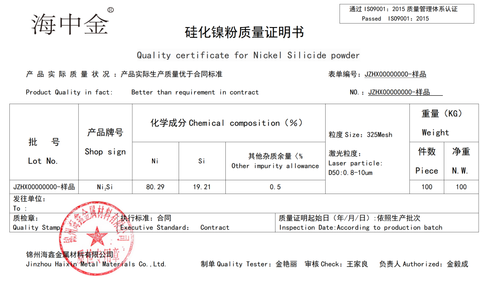 產(chǎn)品名稱:一硅化二鎳(Ni2Si)