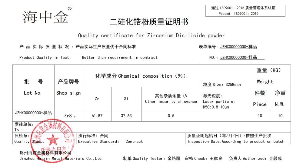 產(chǎn)品名稱(chēng):二硅化鋯(ZrSi2