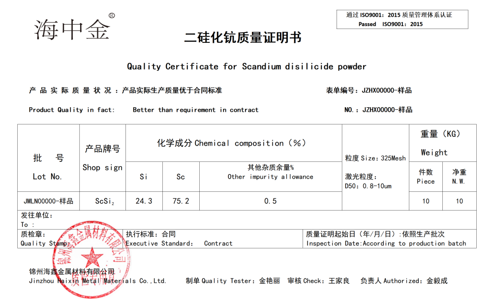 產(chǎn)品名稱(chēng):二硅化鈧(ScSi2)
