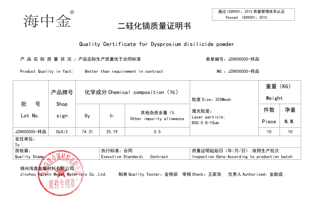 產(chǎn)品名稱:二硅化鏑(DySi2)